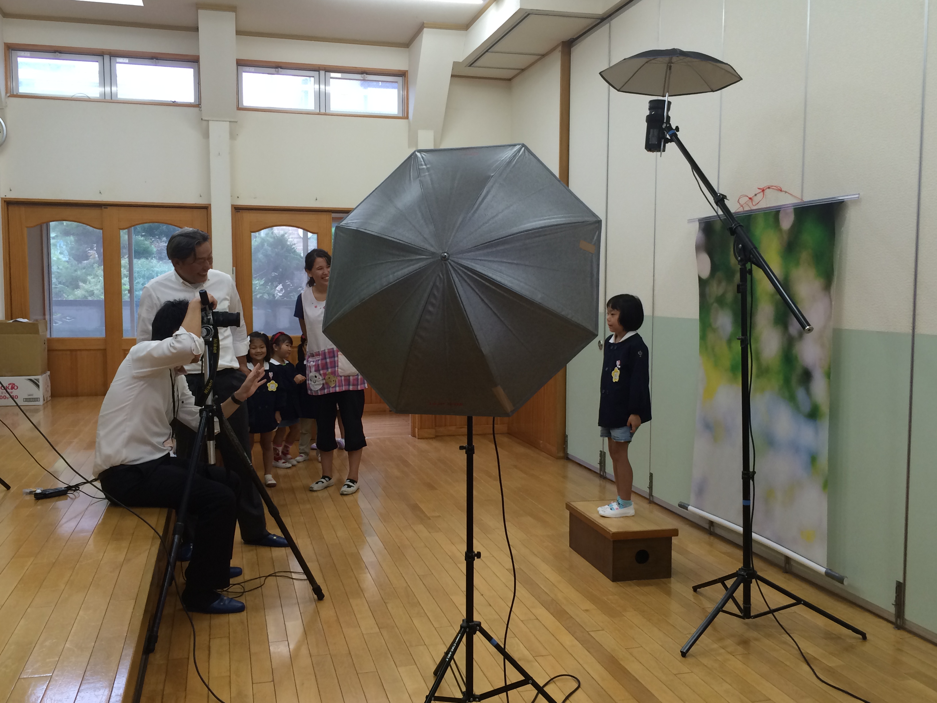 | 今日は年長さんの そつえんぶっく個人写真の撮影です。 緊張気味の人も 写真屋さんの愉快な演出で 思わずニッコリ。