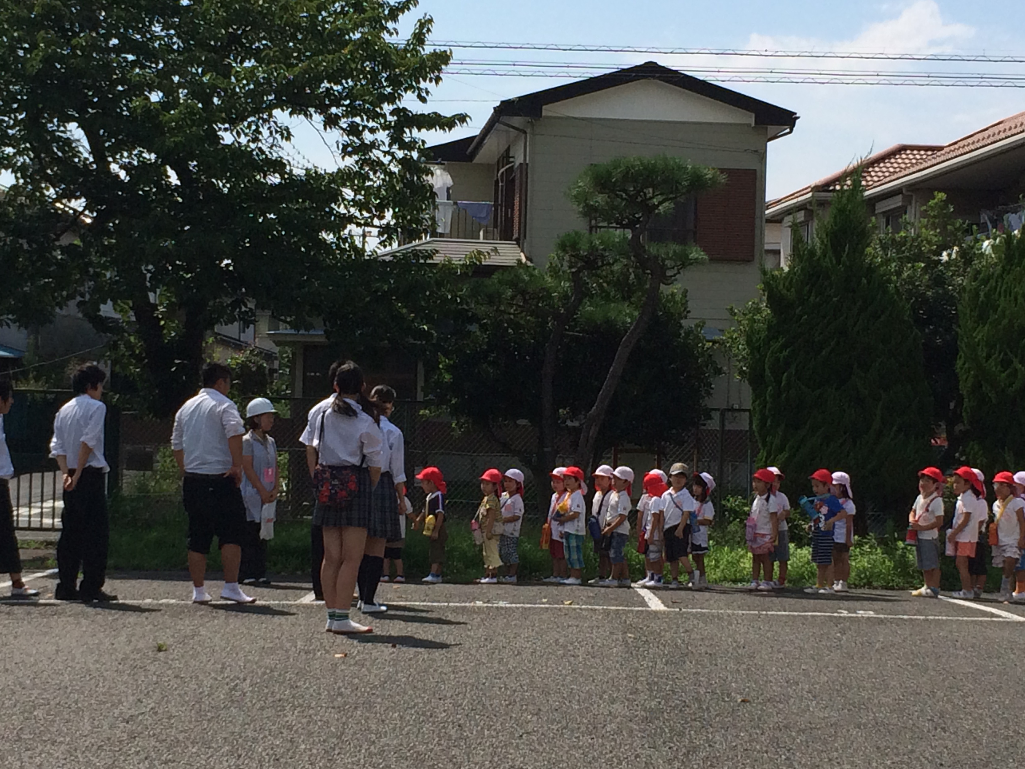 初めての年少さんも往復頑張って歩き、 防災担当の先生からは 時間的にも これだけできれば上々でしょう、と お褒めの言葉をいただきました。