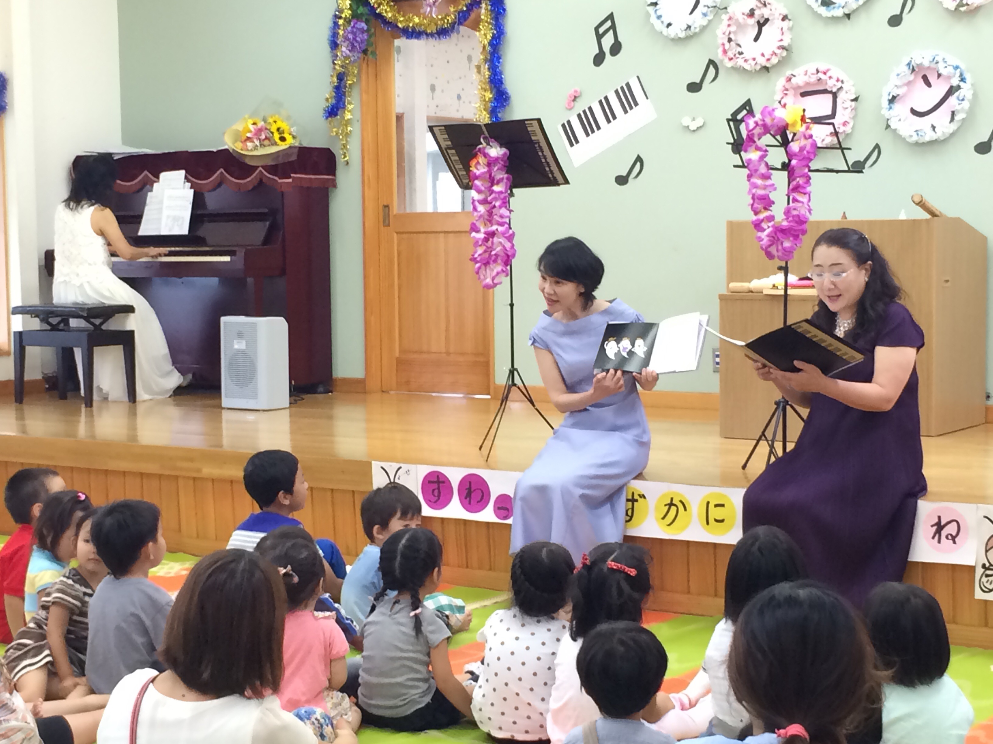 皆で歌ったり楽器を鳴らしたりする他にも 「おばけなんてないさ」の絵本を見ながら そして珍しい楽器の紹介も。 最後には少し大人向けの歌4曲の プレゼントもあるスペシャル版でした。 皆 その歌声に ゆったりと聴き入っていましたね。