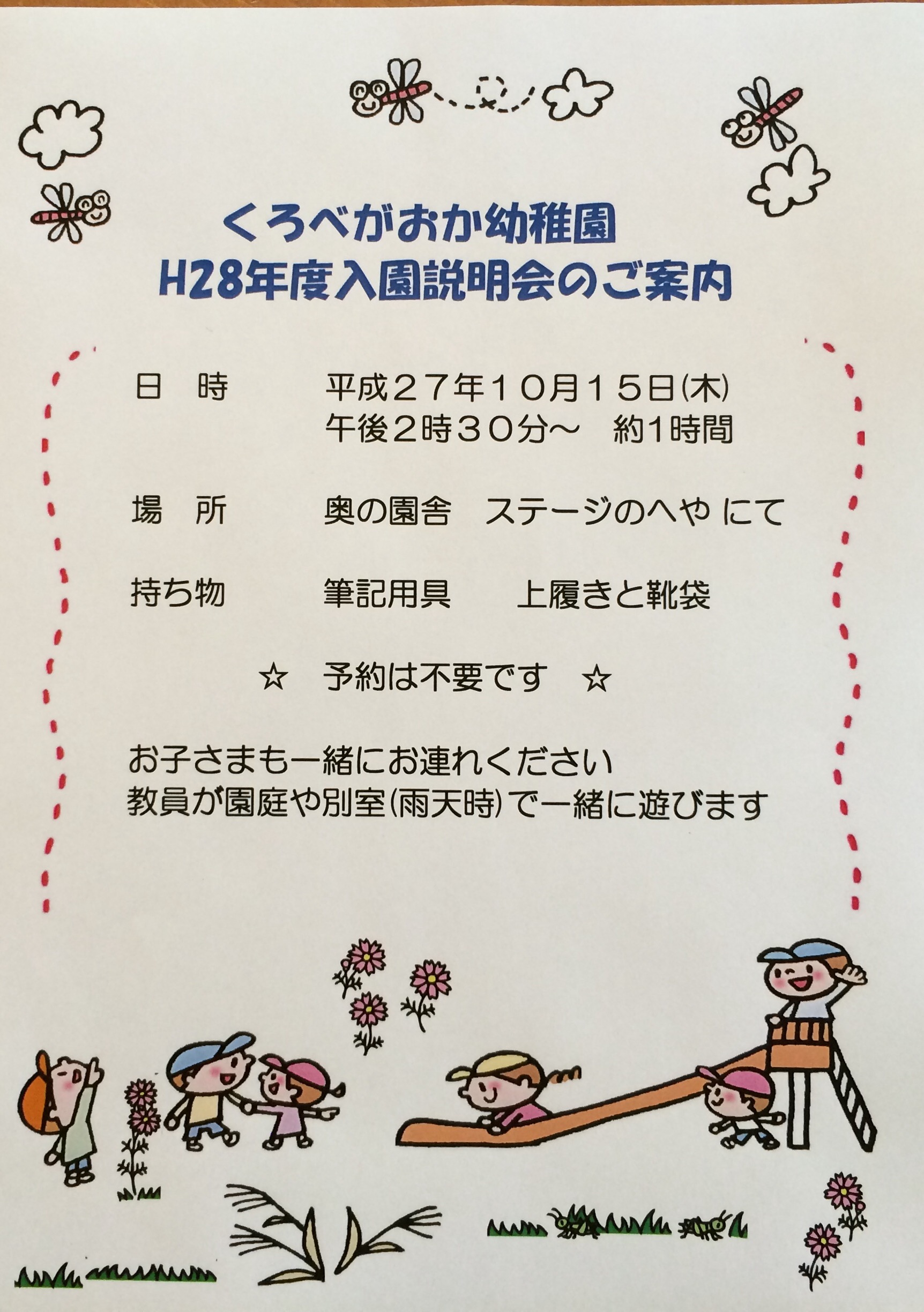 | 10月15日(木)より 本園にて 「H28年度の園児募集要項及び願書」をお配りします