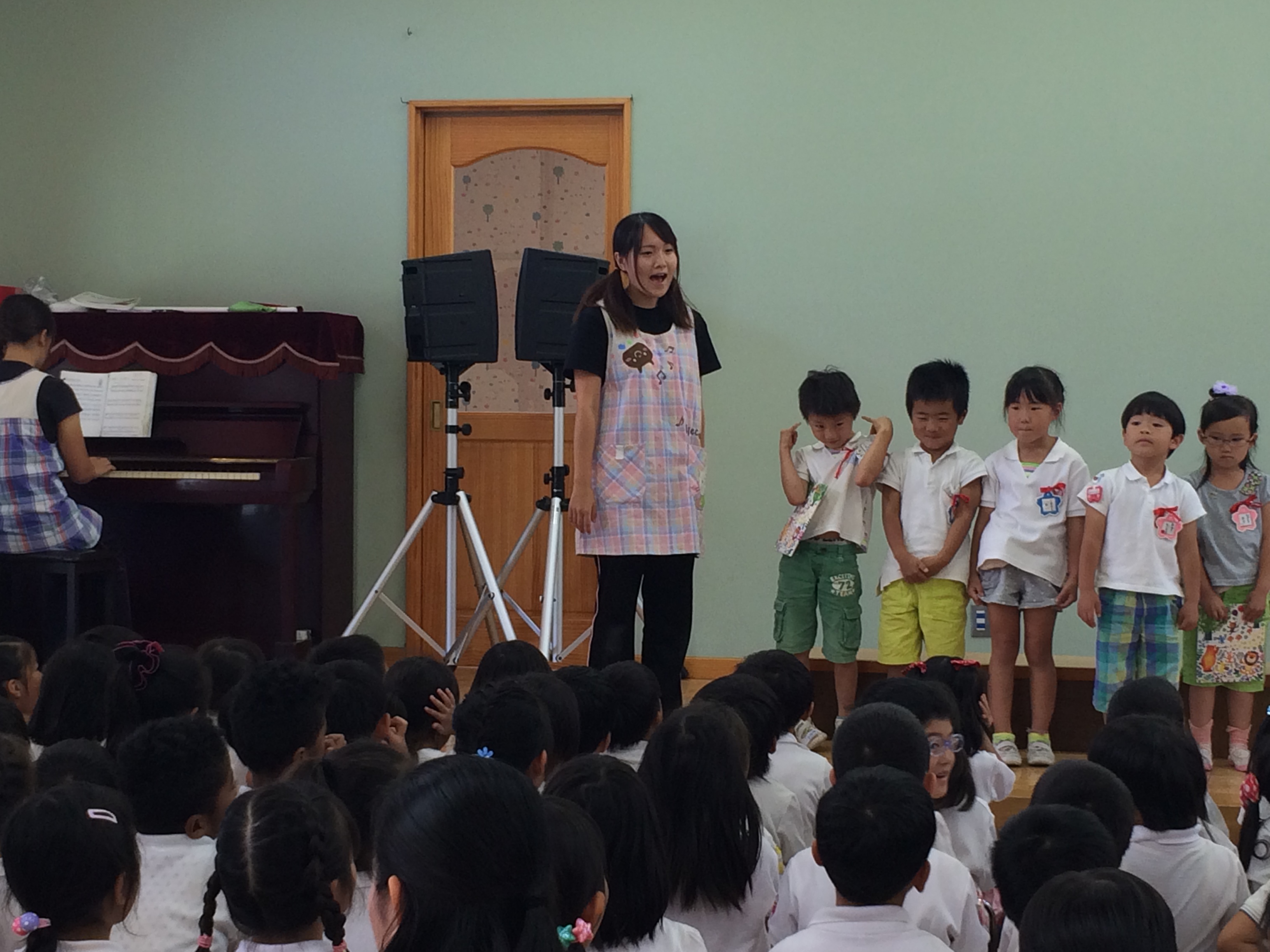 お祝いの15人のお友だちも嬉しそう ♪ どんどんのびて てんまでとどけ ほんとに おめでとう ♪