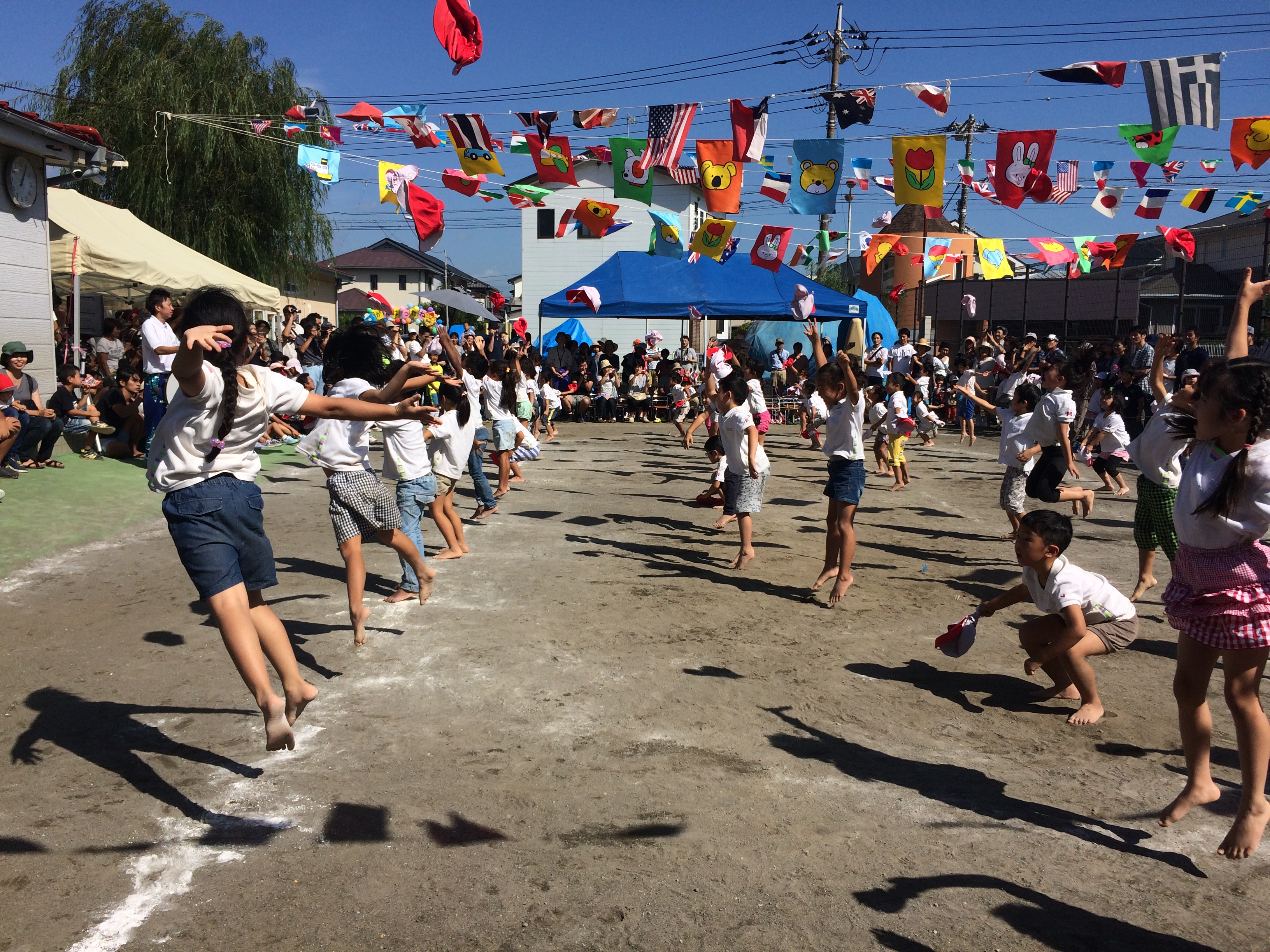 | 真っ青な秋空の下 園児、先生、おうちの方達で楽しんだ 今日の運動会! 一人ひとりが最後まで力いっぱい 頑張りました。 紅白リレーは走る側も応援する側も 黒部ファミリーがひとつになった ひと時でした。
