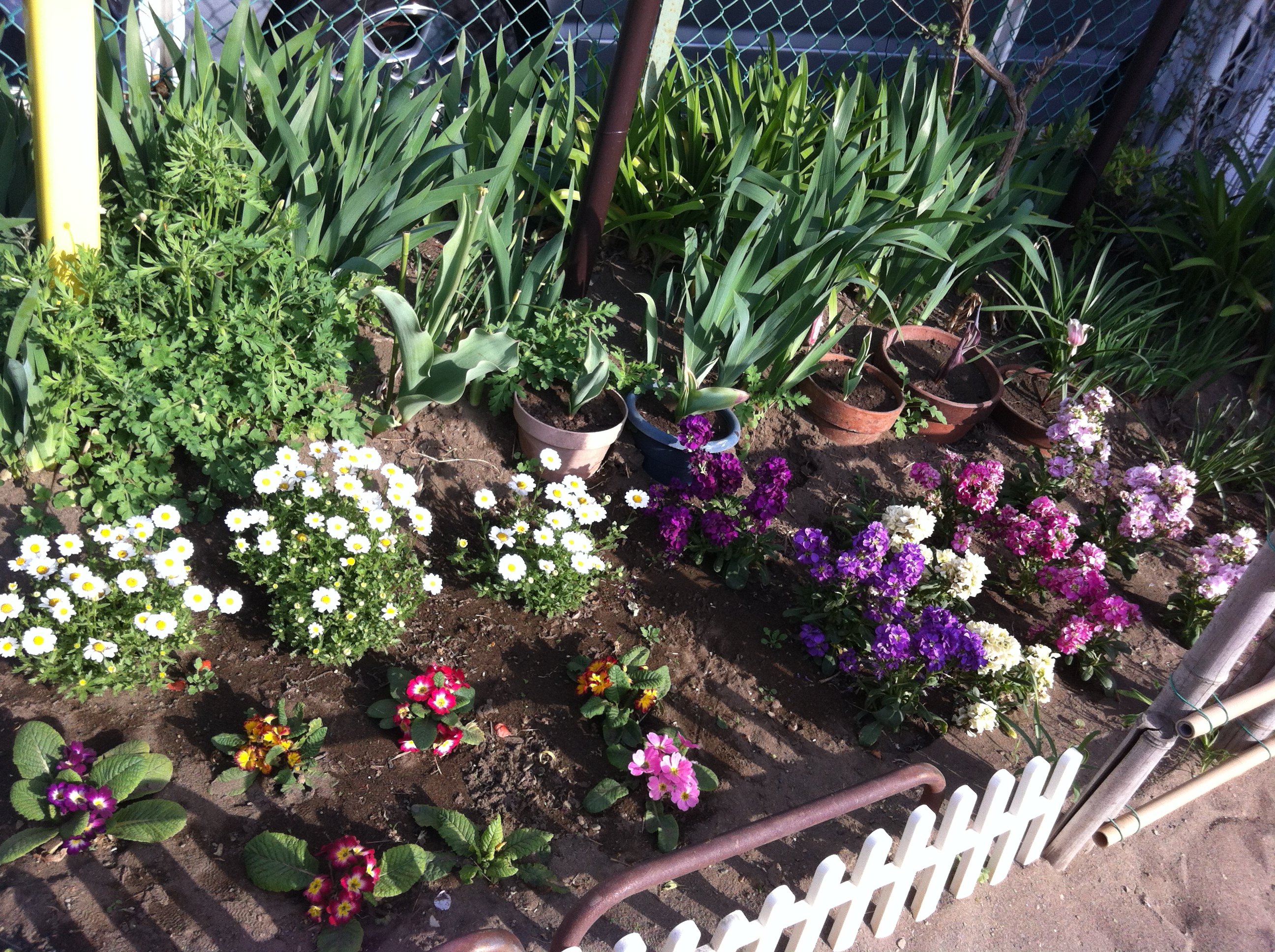 砂場近くの花壇では 子ども達が植えたノースポールが 大きな株に育っています!