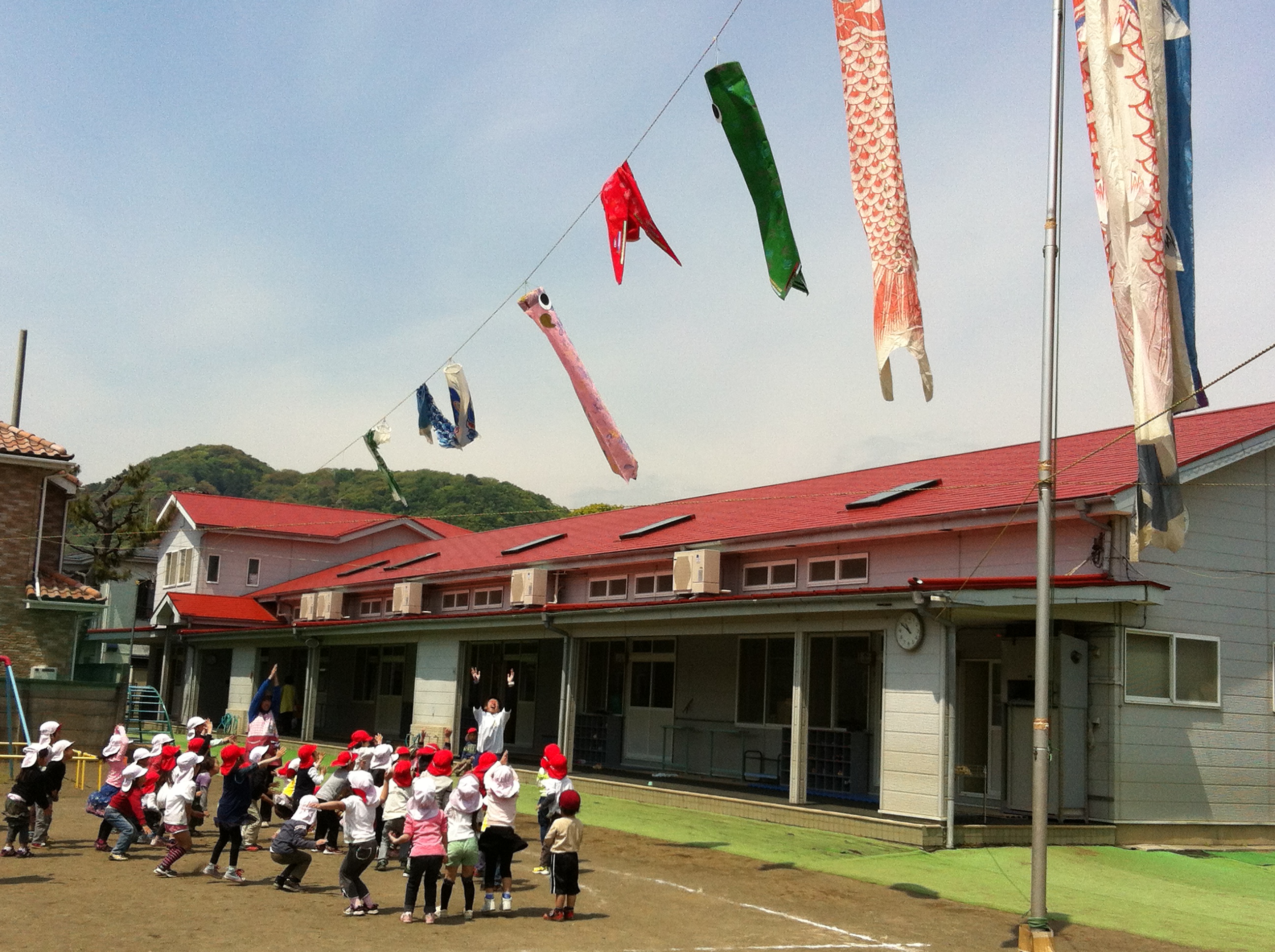 | 今日は五月晴れの下 30人以上の小さいお友達が園庭に 遊びにきてくれました。