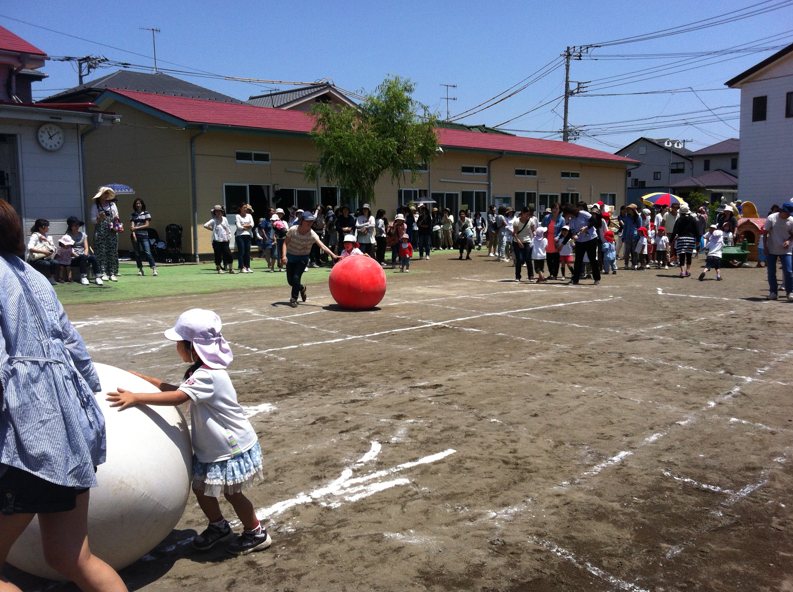 年少さんは でかパンリレー 年中さんは 大玉ころがし 年長さんは 二人三脚