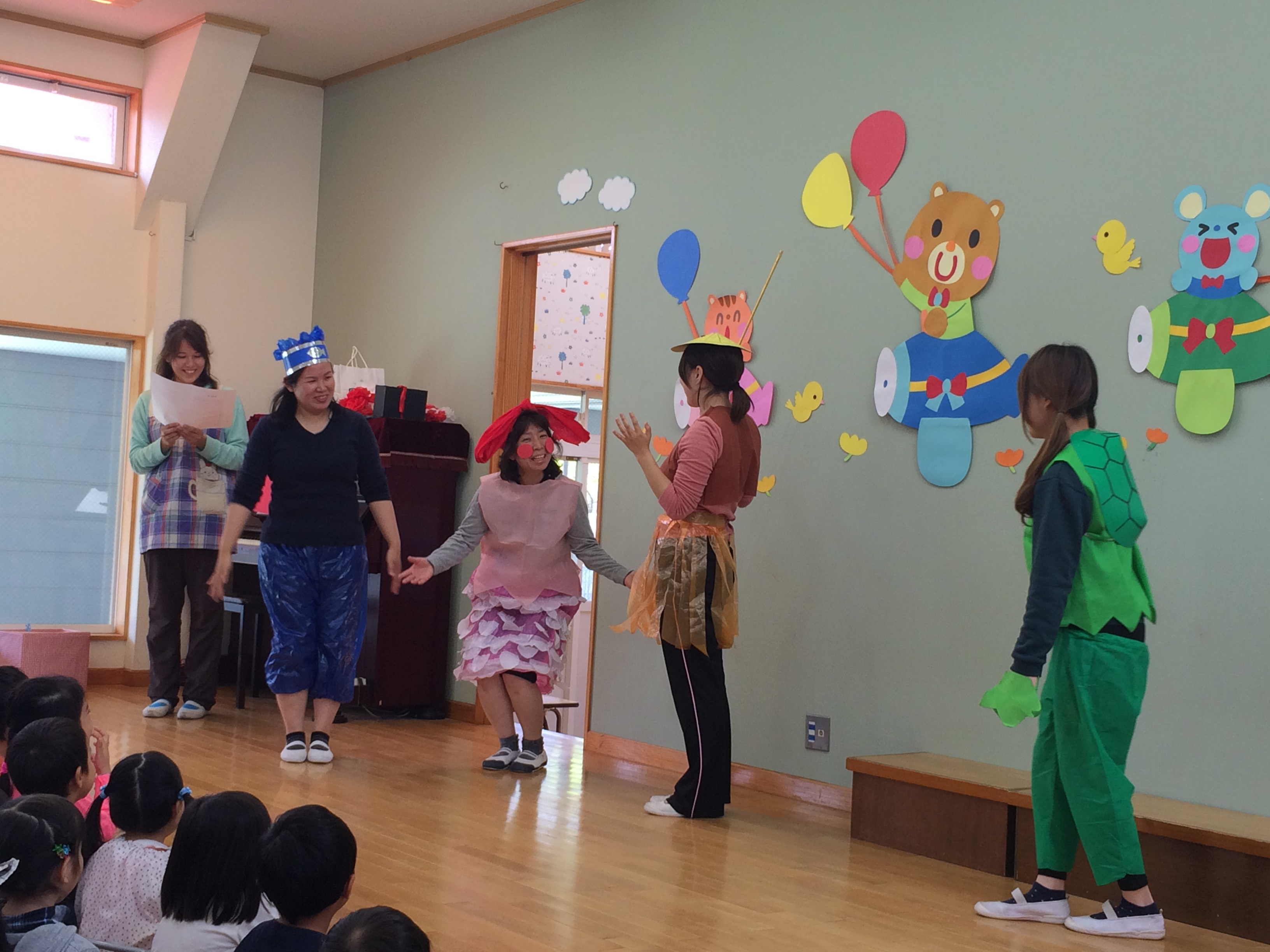 担任の先生が登場するたびに 目を輝かせて見る子ども達でしたが 浦島太郎さんが最後におじいさんに なった時にはビックリして? 泣いてしまう人もいました!