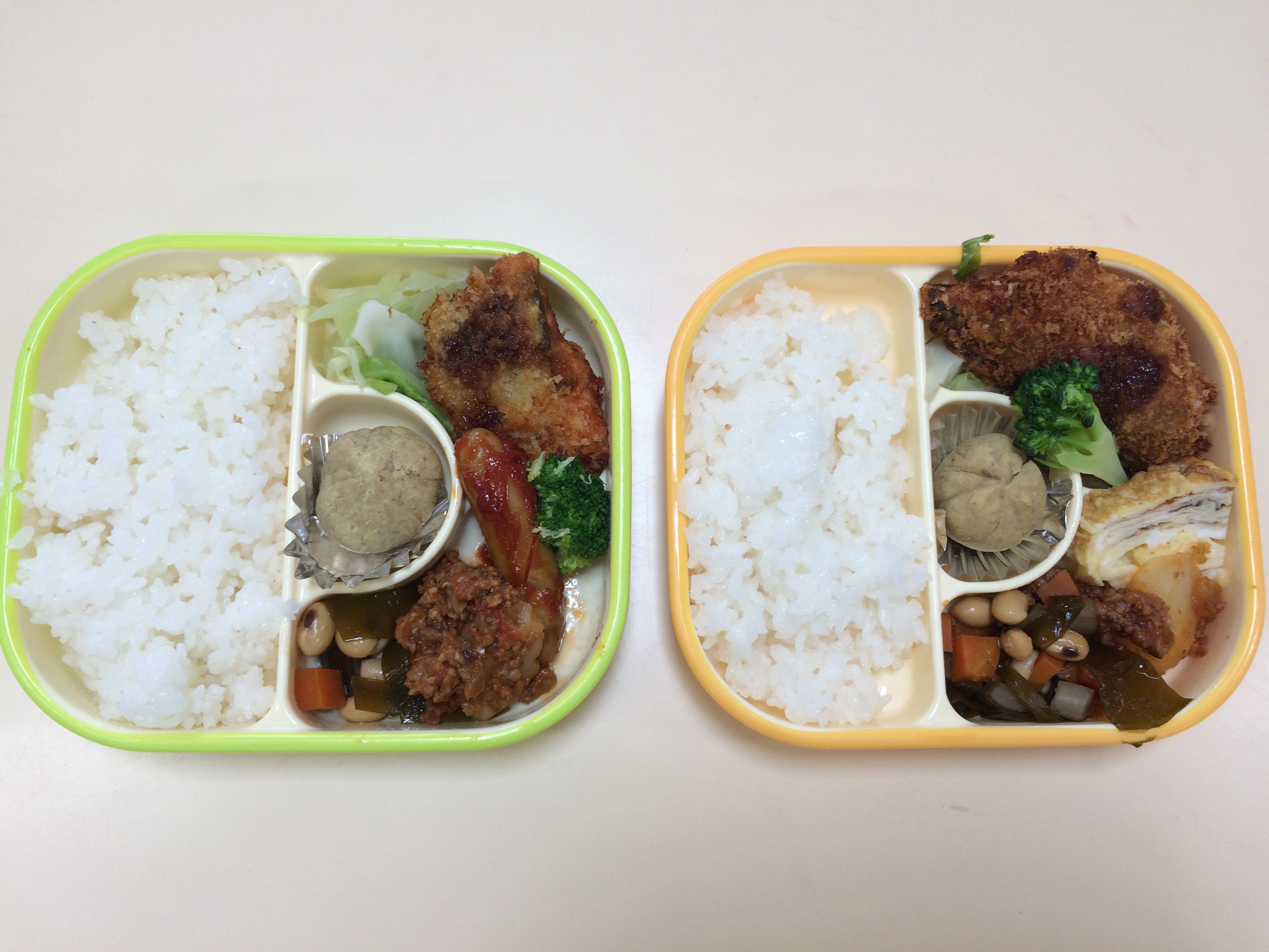 右は卵焼き入りで 左は、卵アレルギー園児用のウインナ入りです。