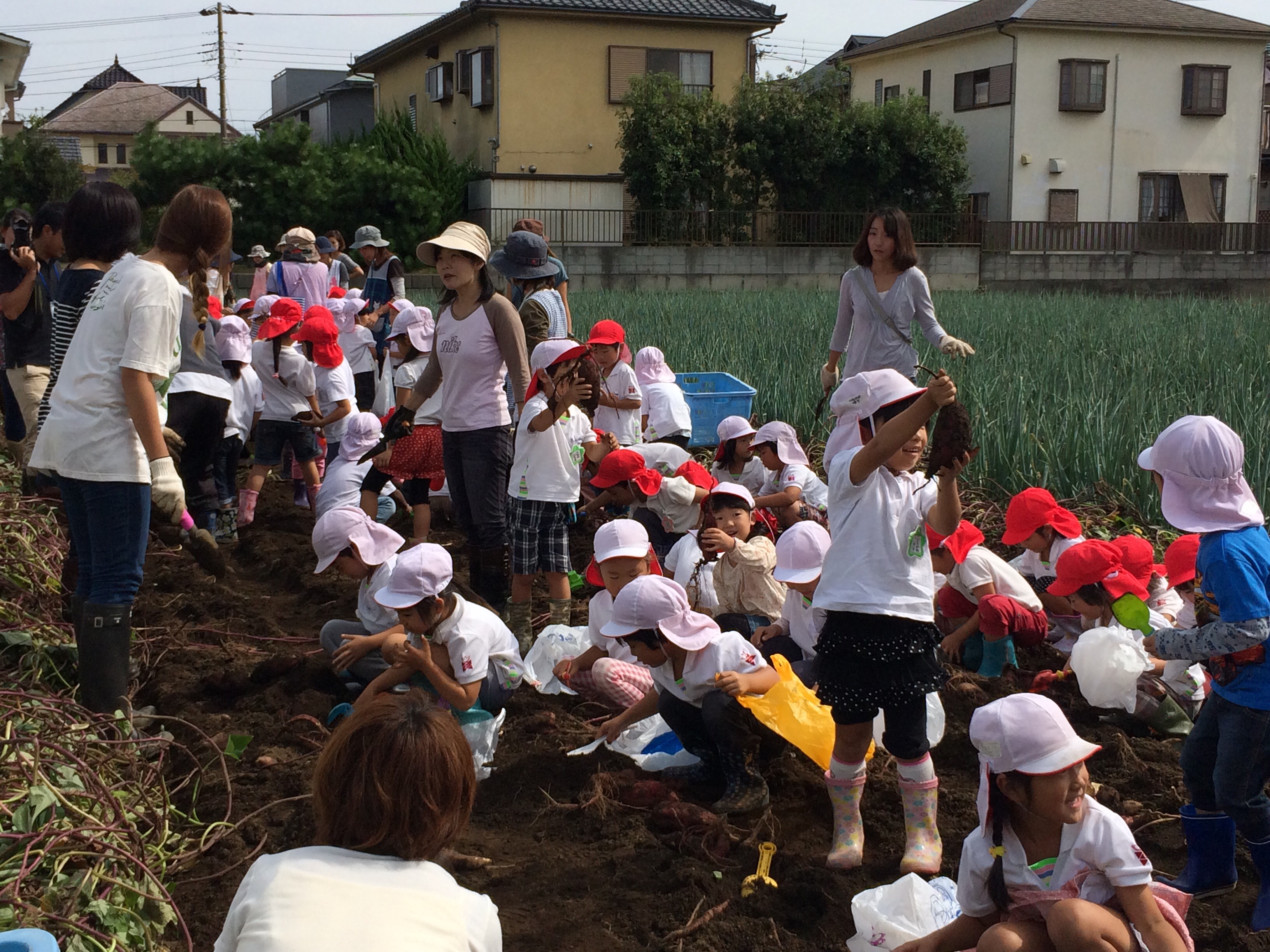 秋晴れの下、撫子原のおいも畑で 皆で楽しくおいもほり