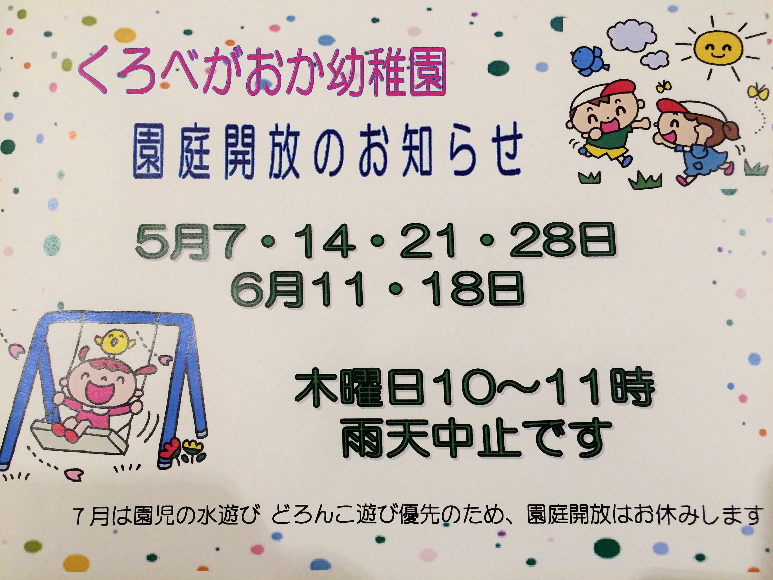 | 4月は在園児が午前保育のため 園庭開放はお休みです