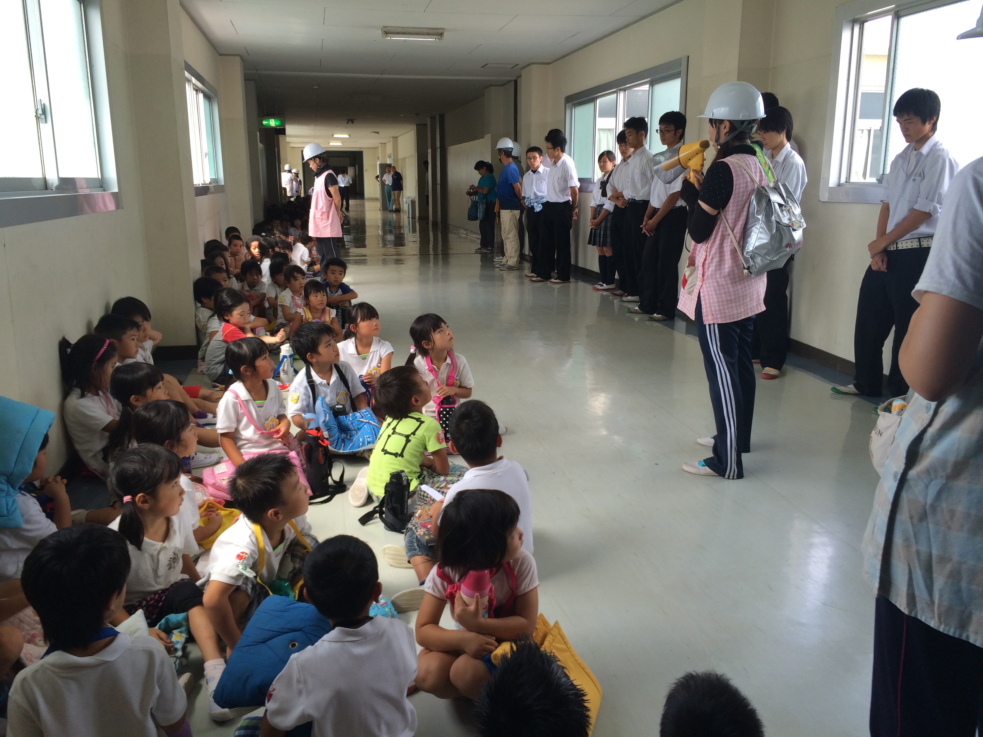 | 給食後、園児と全教職員で広域避難所 平塚工科高校の校舎内4階まで 津波避難訓練をいたしました。 反町校長先生のご協力の下、諸先生方や生徒会の皆さんが 園児達を西門から誘導してくださり いざという時には心強い限りです。