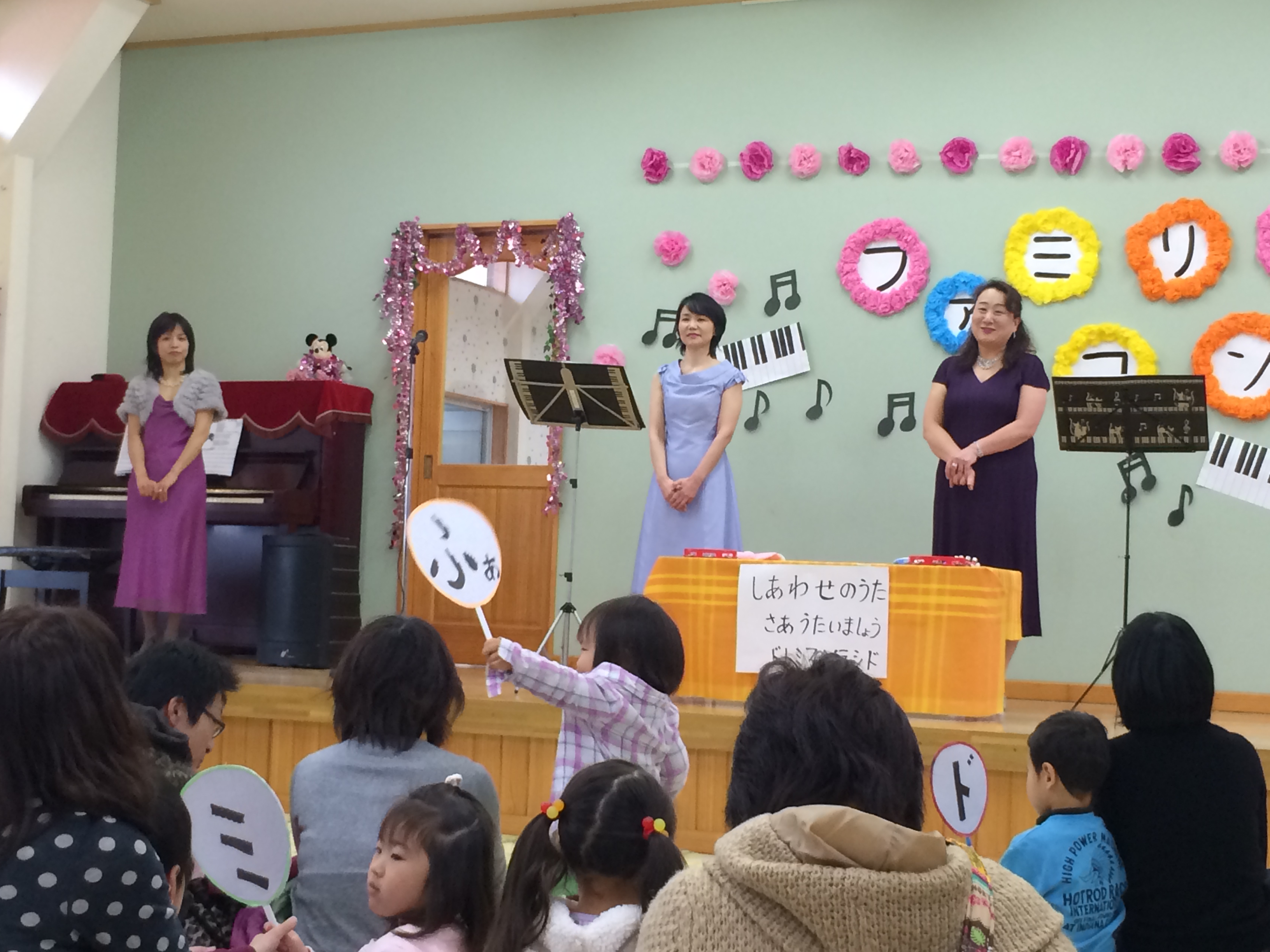 今ではすっかり おなじみになったコンサートは 園児とご家族、ご近所の方々も一緒の 文字通りの ファミリーコンサートです。