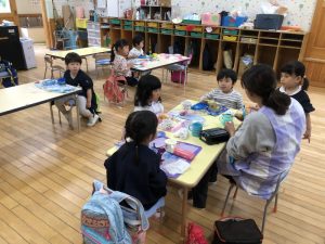 ☘ 年少組活動とお弁当の時間 R3 5.17 ☘ ゆうぎしつでのRainbowから教室に戻り、次は かたつむりを作る活動です🐌 お弁当も回数を重ねるにつれて、お手伝いなしでも食べられるようになってきました。おうちからの手作りお弁当は最高!
