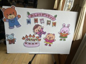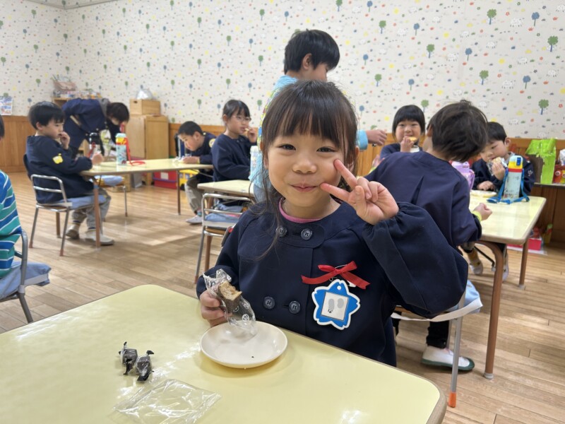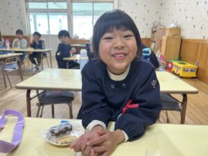 1月は年長組の女の子二人のお誕生会でした。作品展の展示物でステージのへやがいっぱいなので、今回はゆうぎ室へ移動してきました。優先生の「おしょうがつランド」のお話プレゼントや、みんなからの盛大な歌でお祝いしました。ほら、ニコニコ 二人ともとても嬉しそうでしょ⁈ おめでとう❣